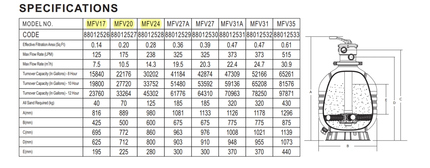 FLOTIDE MFV TOP MOUNT SAND FILTER 17″
