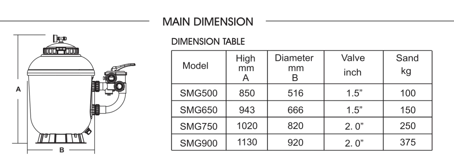 This Gelcoat filter tank has been well-received by the industry due to the durable, trustworthy performance and smooth gelcoat fibreglass finish. With UV-resistant material used, it is able to operate under prolonged sunlight for years of reliability. “SMG” Series side mount filters are equipped with a six-position, side mount multiport valve and ABS laterals.