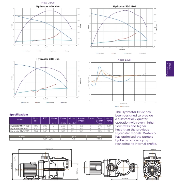 The new Hydrostar MK4 Commercial Pump has been designed to provide a substantially quieter operation and improved flow rates than the MK3 version. A new reshaped design has optimised the hydraulic efficiency of the pump.
