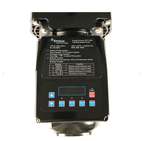 Compared to the Emaux Super-Power Variable speed pump, traditional single-speed pumps run continuously and inefficiently at maximum load incurring high running costs. Reduced speed provides slower water circulation rates and puts less strain on the complete installation such as filter, sanitization and plumbing. It reduces the wear-and-tear factor, ending in significant savings for the pool owner.