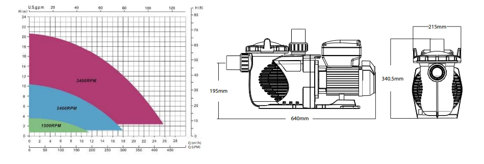 - Quiet pump – lowest speed 800rpm : 45 dB
